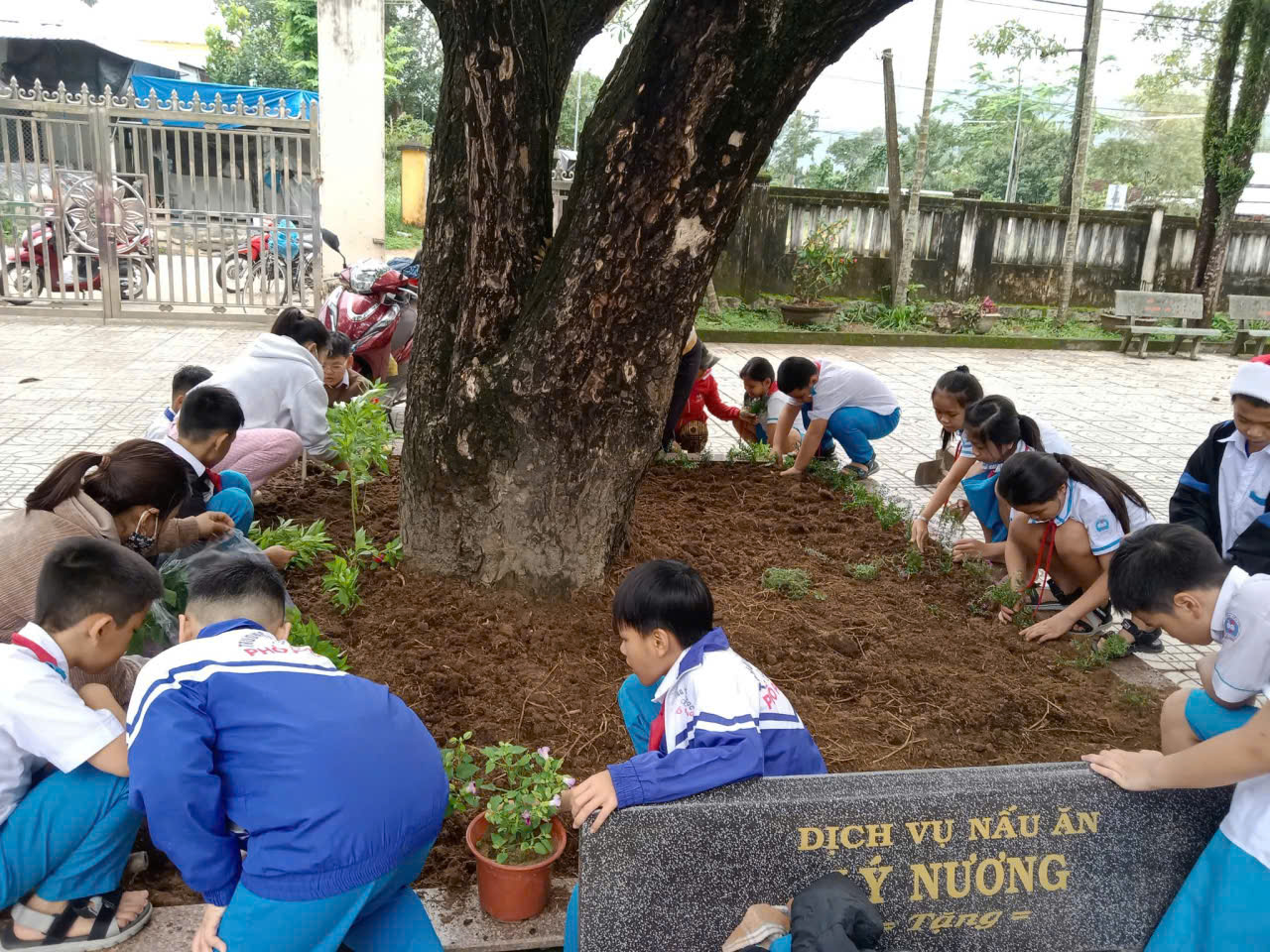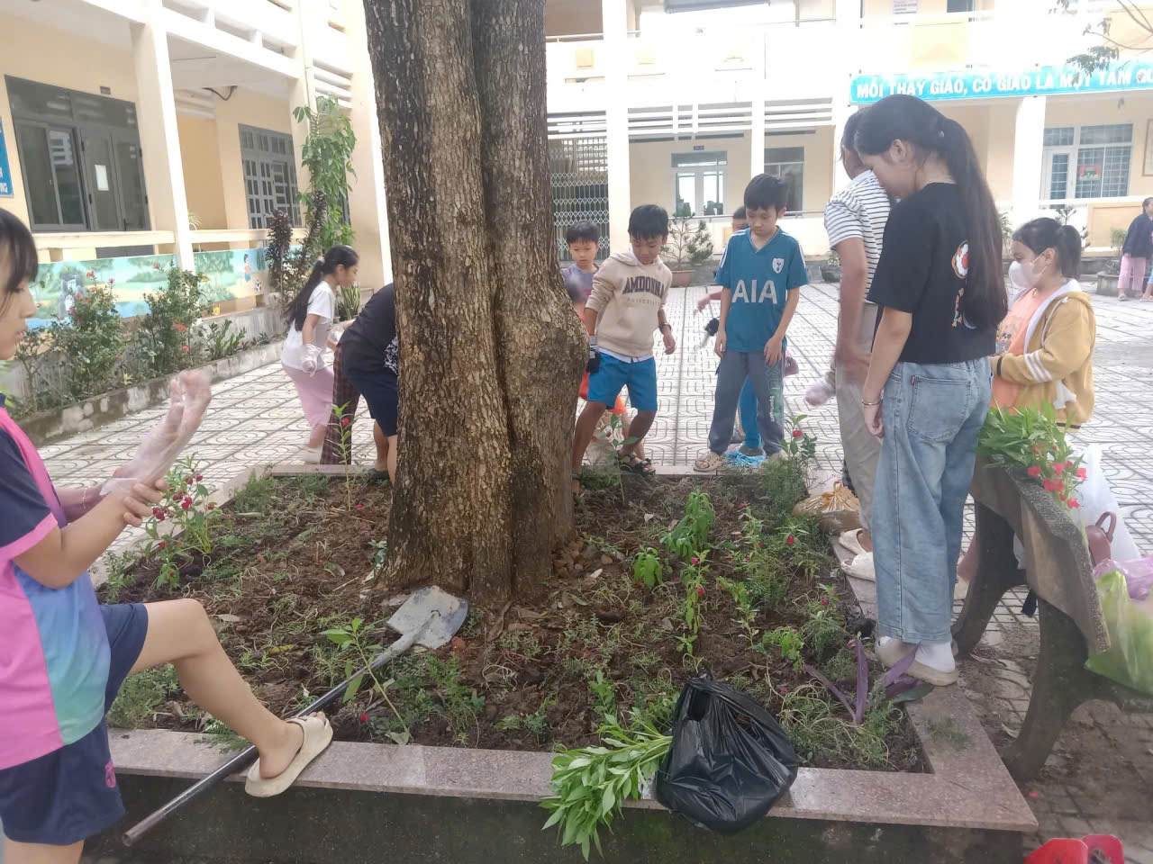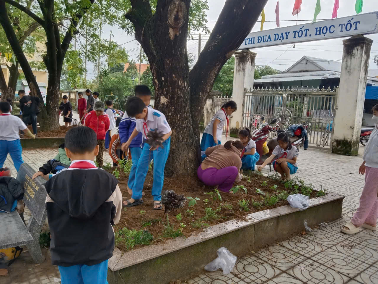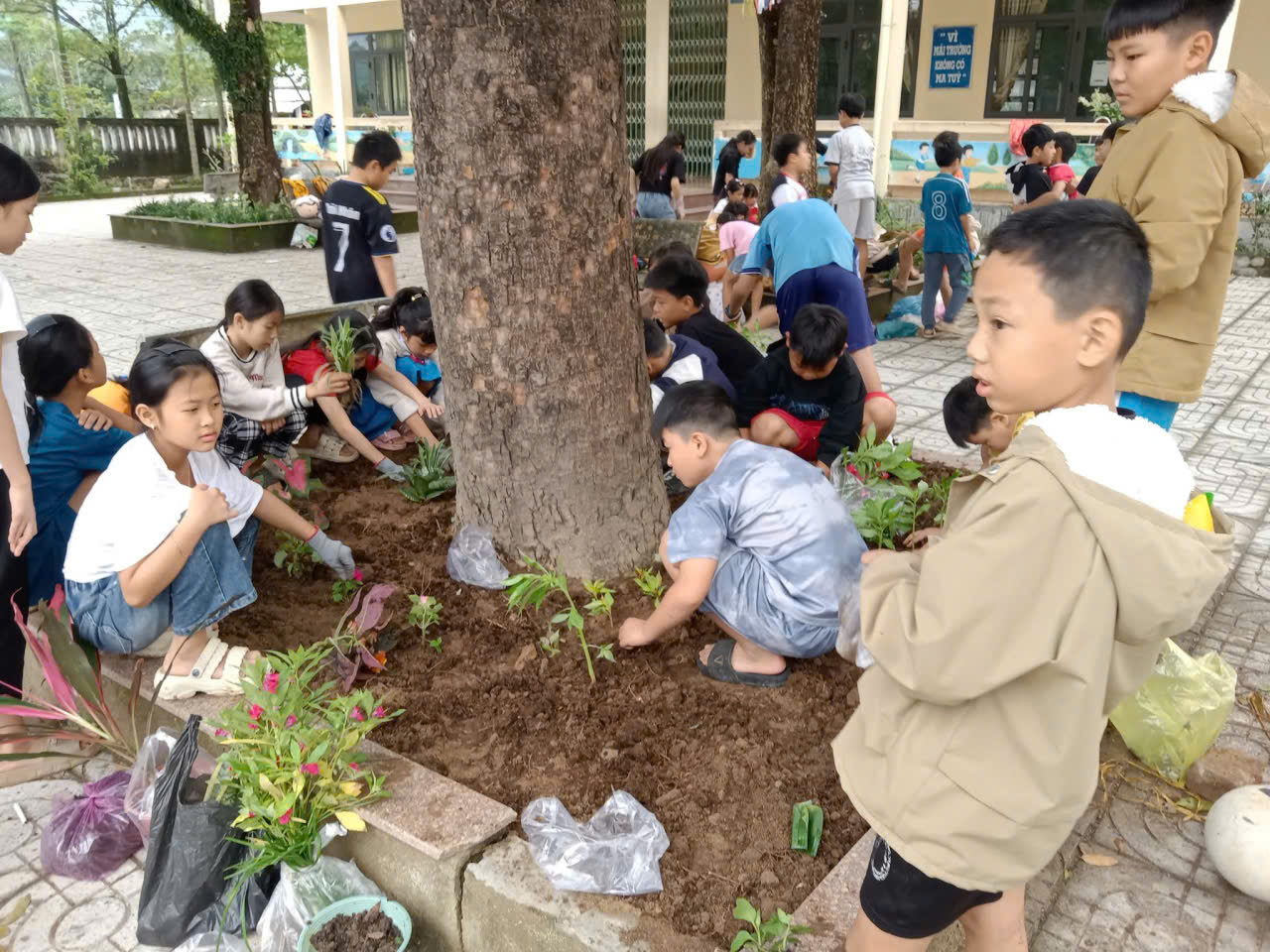 – Nhìn những giọt mồ hôi lăn dài trên má nhưng nụ cười vẫn rạng rỡ, thầy cô tin rằng mỗi bông hoa các con trồng xuống hôm nay sẽ là một kỷ niệm đẹp dưới mái trường này. 🌼