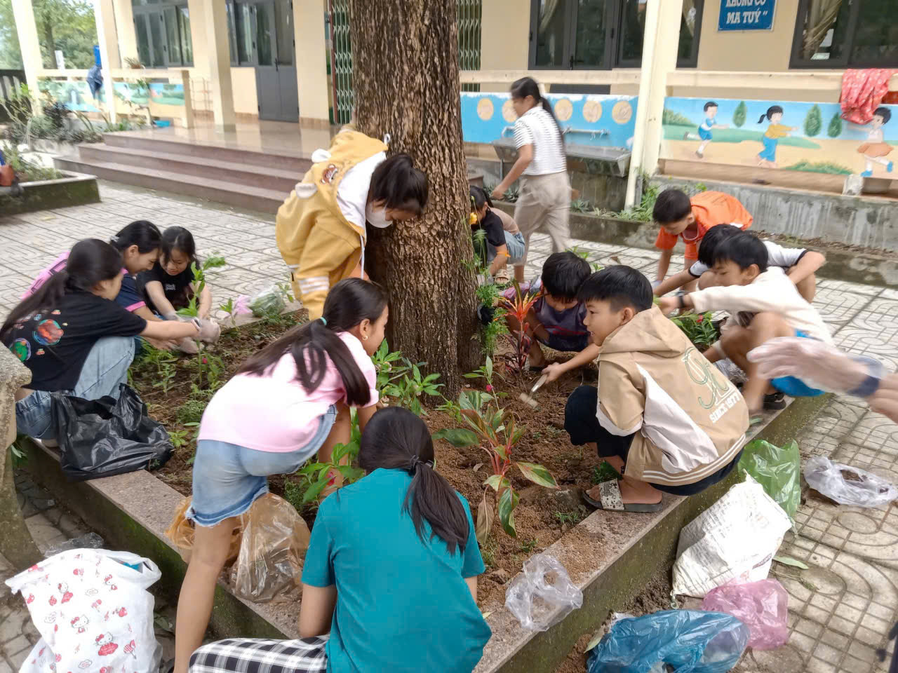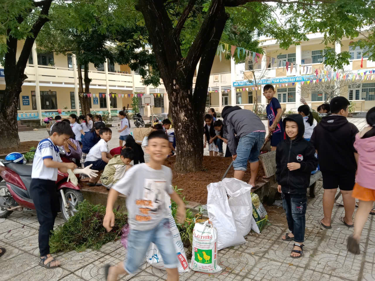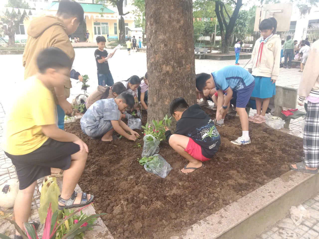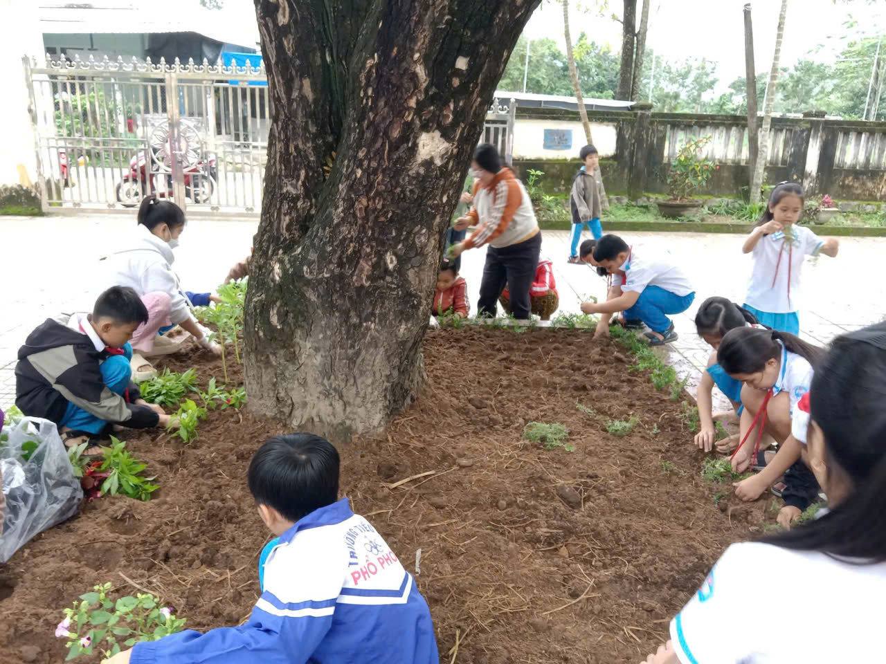 – Nhìn những giọt mồ hôi lăn dài trên má nhưng nụ cười vẫn rạng rỡ, thầy cô tin rằng mỗi bông hoa các con trồng xuống hôm nay sẽ là một kỷ niệm đẹp dưới mái trường này. 🌼
