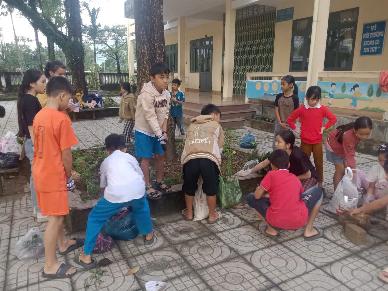 – Hôm nay, sân trường Tiểu học Phổ Phong bỗng rộn ràng hơn hẳn bởi những tiếng cười và bóng dáng nhỏ nhắn của các bạn học sinh đang mải mê “làm vườn”. 👩🌾👨🌾